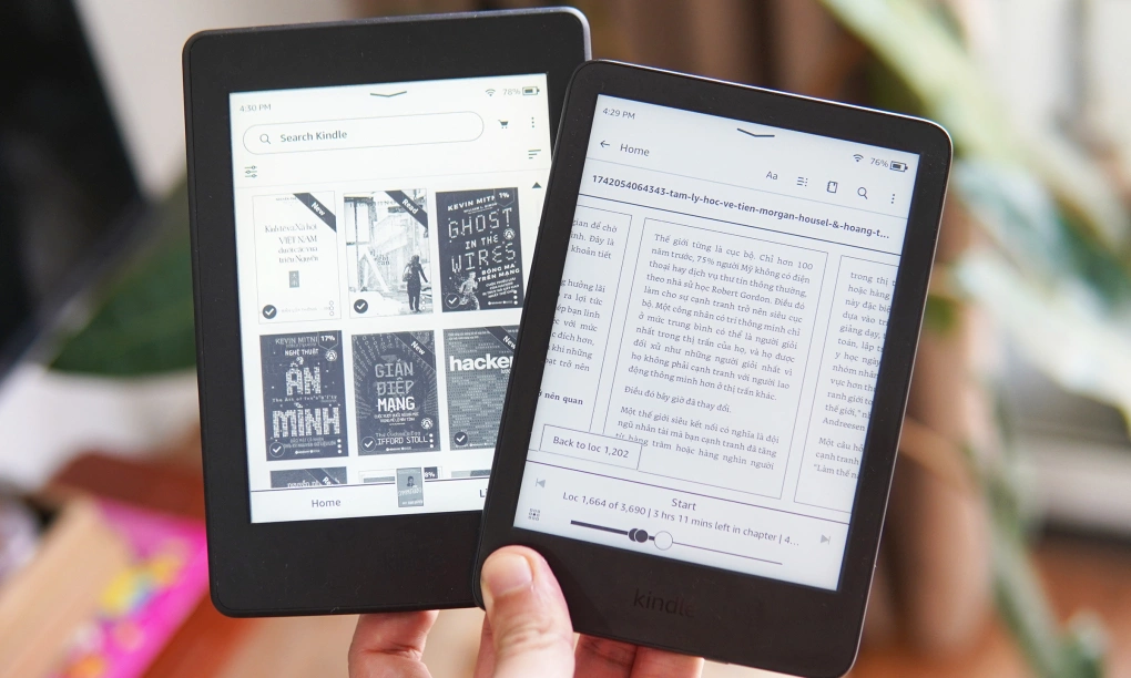 Giao diện đọc sách điện tử trên máy đọc sách Amazon Kindle. Ảnh: Lưu Quý